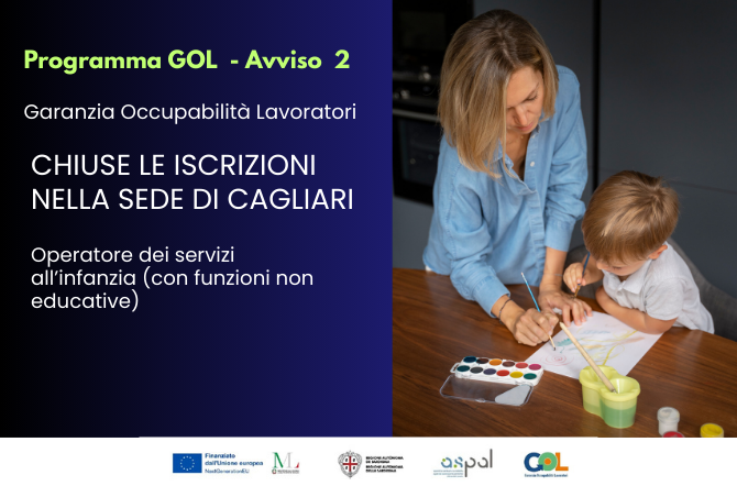CAGLIARI: Chiuse le iscrizioni al corso formativo gratuito GOL – Avviso 2 – Operatore dei servizi all’infanzia (con funzioni non educative)