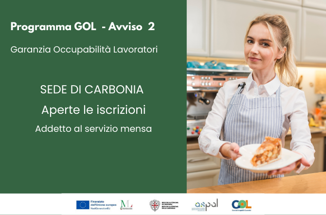 CARBONIA: Aperte le iscrizioni al corso formativo gratuito GOL – Avviso 2 – Addetto al servizio mensa
