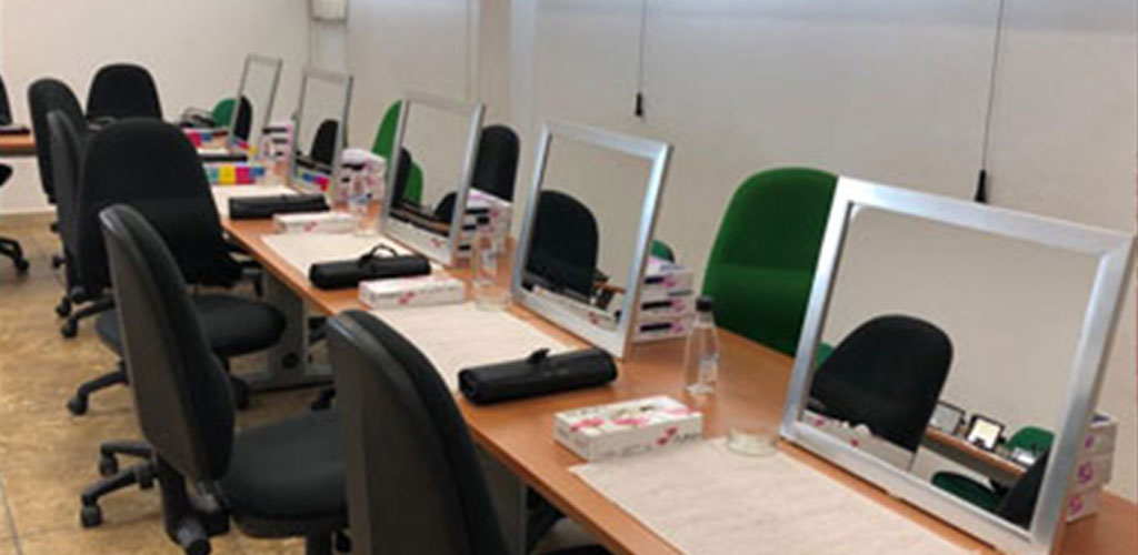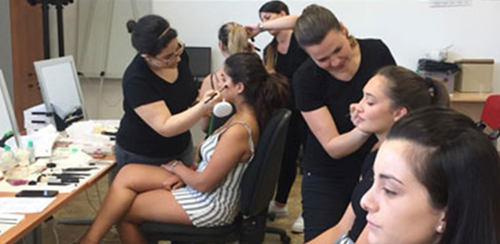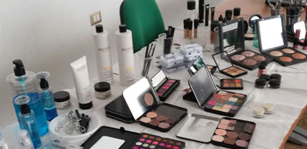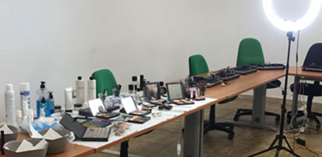 Alcuni scatti dei partecipanti del percorso dal titolo “Predisposizione del trucco e la realizzazione Make-Up base, Make-Up giorno, sera, sposa, moda e passarella” impegnati nell’effettuare alcune predisposizioni di trucco durante la fase finale del corso, il 21 giugno 2019 presso la sede di Evolvere a Carbonia.