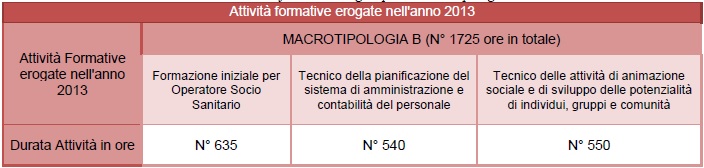 Tabella 1. Attività formative erogate nell’anno 2013 per la Macrotipologia B della sede di Cagliari