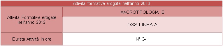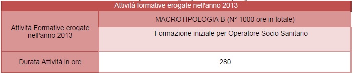 Linea B – Operatore Socio Sanitario con certificazione delle competenze delle persone provenienti da esperienza lavorativa (2 corsi); Linea C – Operatore Socio Sanitario con formazione complementare in assistenza sanitaria;