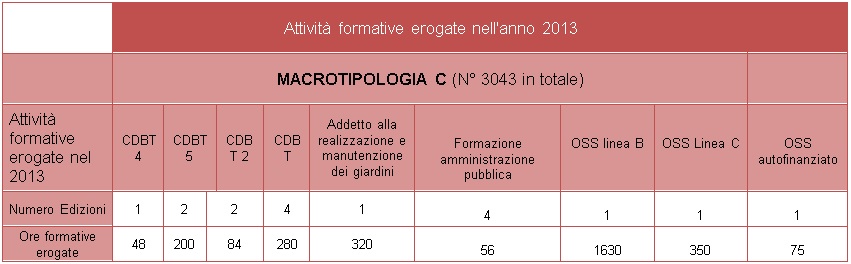 Tabella 4. Attività formative erogate nell’anno 2013 per la Macrotipologia C – Formazione Continua della sede di Cagliari
