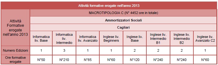 Tabella 2 e 3 . Attività formative erogate nell’anno 2013 per la Macrotipologia C – Bando Politiche Attive della sede di Cagliari