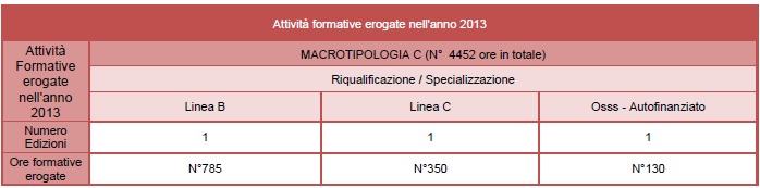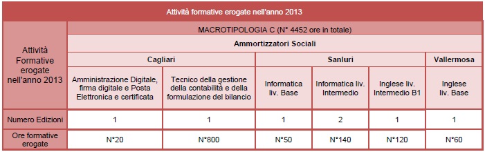 Tabella 1. Attività Formative erogate nell’anno 2013. Macrotipologia C. – Ammortizzatori Sociali nella Sede di Nuoro