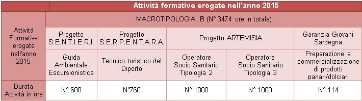 Tabella 1. Attività formative erogate nell’anno 2015 per la Macrotipologia B della sede di Cagliari