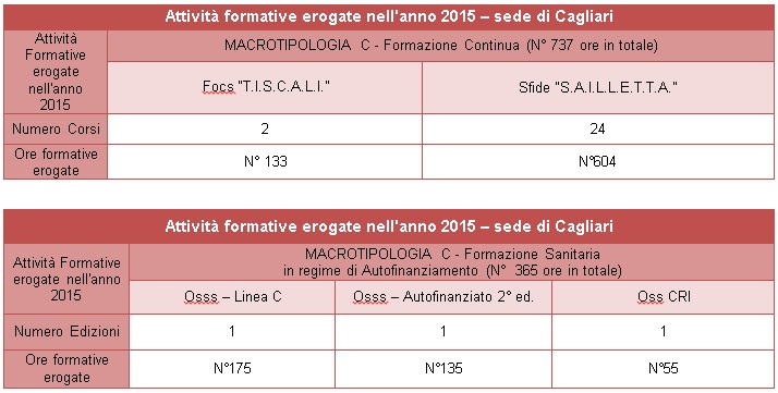 Tabella 1. Attività formative erogate nell’anno 2015 per la Macrotipologia C della sede di Cagliari