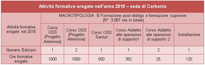 Tabella 1 . Attività Formative erogate nell’anno 2015. Macrotipologia B. Sede di Carbonia