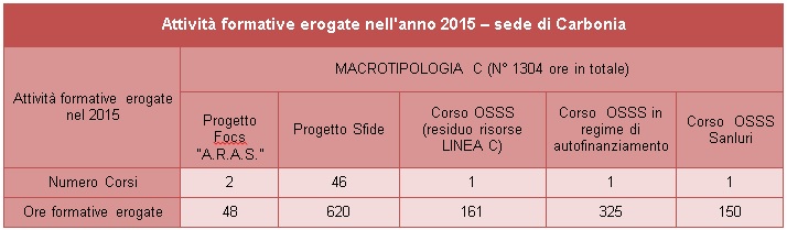 Tabella 1 . Attività Formative erogate nell’anno 2015. Macrotipologia C. Sede di Carbonia
